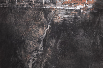 山水之妙,不仅在可观可游,更在可居可思。它是一片融合了自然造化与人文理想的境域,承载着创作者对世界的观察、对传统的回应以及对内心秩序的构建。画家孙学润的山水之境,正是这样一处引人驻足、发人深省的灵性空间。他的画面结构严谨,山石树木的经营颇具匠心,于开阔中见精密,在浑成中藏法度。其笔墨运用,笔线沉稳扎实,富有韧性;墨色层次丰富,营造出山峦的体量感与空气的氤氲感,在苍劲中透出温润,于深厚处不乏空灵。孙