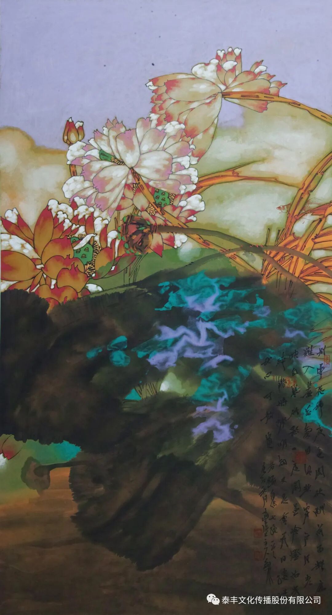 泰丰文化签约画家田怀良、胡朝水两位艺术家的花鸟作品,