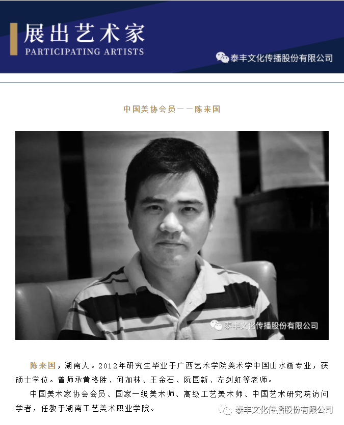 泰丰文化在每期展览预告中都会详细展示参展艺术家的信息,在展览现场也会将参展艺术家的重要信息进行展示,方便参展的艺术爱好者及时、便捷的关注艺术家、了解艺术家。与此同时,泰丰文化的很多展览都会邀请艺术家本人到场,在零距离的互动交流中,艺术家会更直观的表达自己的创作思路、创作情感等想法,帮助艺术爱好者进一步了解自己的作品。
