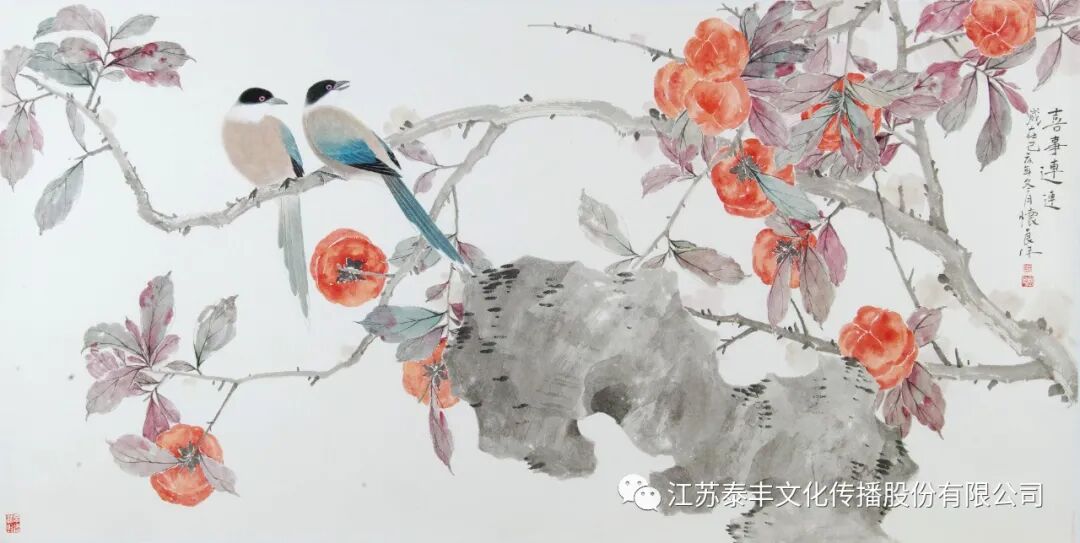 鹊桥是传说鸟神受牛郎织女的真挚情感而感动派来的喜鹊搭成的桥。本文,泰丰文化精选签约画家们的花鸟作品,喜鹊以水墨形态跃然宣纸之上,在七夕佳节共赴银河,画面生动、有趣,栩栩如生,为节日增添喜悦氛围。