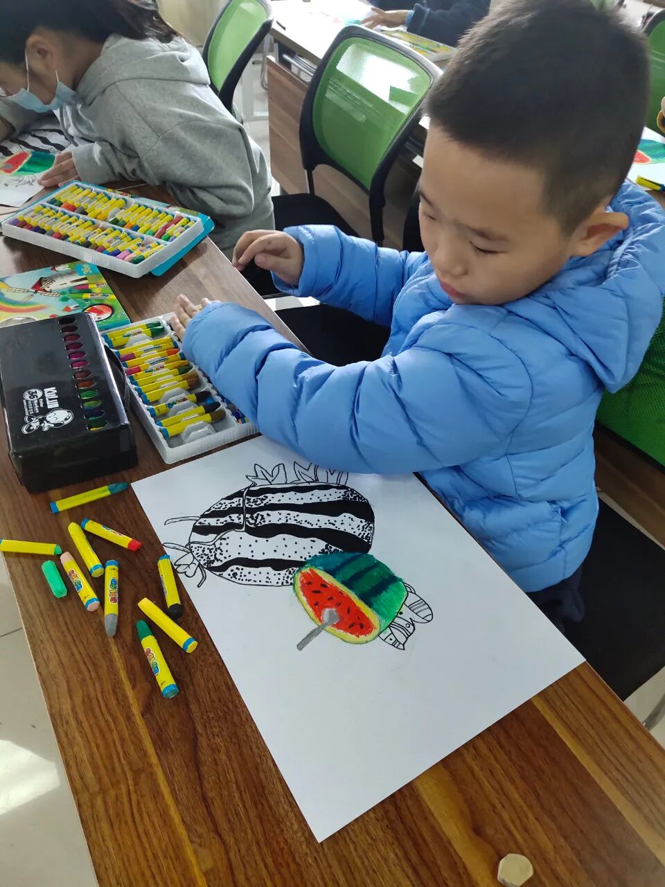 观察完西瓜,我们一起来看看,小朋友笔下的西瓜是什么样子的吧!
