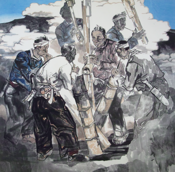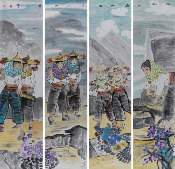 这幅《扛起大山的女人》,无论是造型的意趣还是人物神貌的鲜活、笔墨功夫、线条质量都充满了现代的气息。王小平老师通过此作品向世人透溢出女人们坚强的内心以及对生活的热爱。她们柔弱的身躯与高山成了鲜明的对比。而且成熟的画法加上自己独特的风格,人物精神层面上升,是不可多得上层之作。