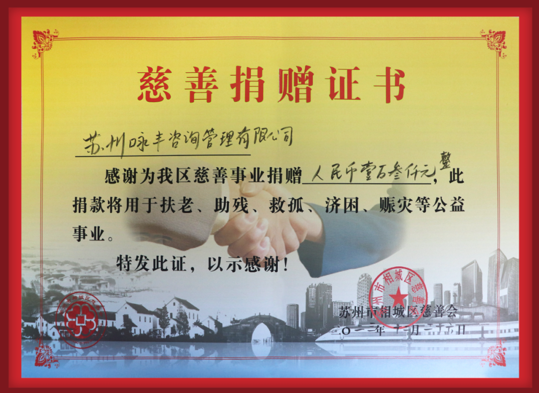 泰丰文化衷心感谢相城区慈善会的荣誉颁奖,也期待未来能有更多机会与社会各界携手共进,共同为社会福利事业贡献力量,见证美好和谐社会的建设与发展。