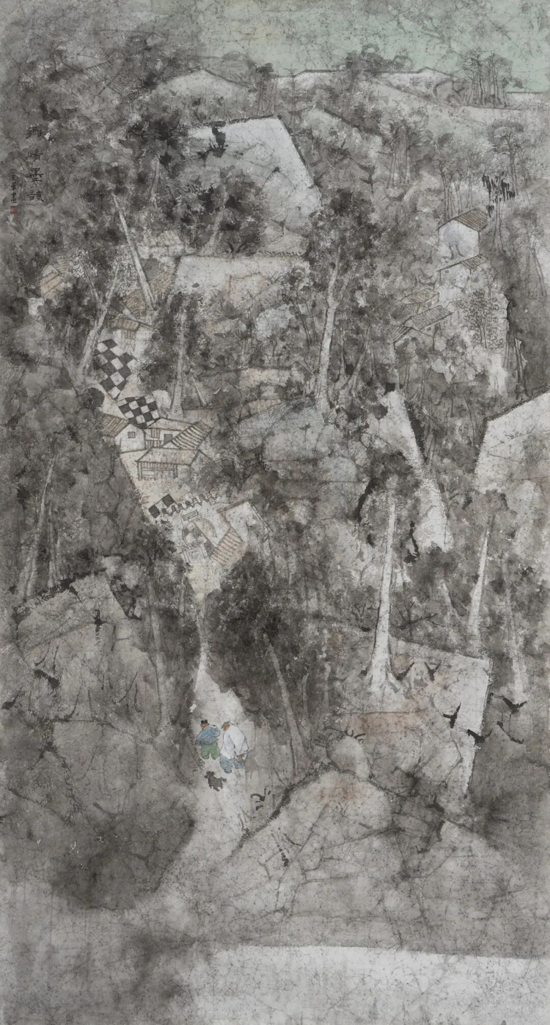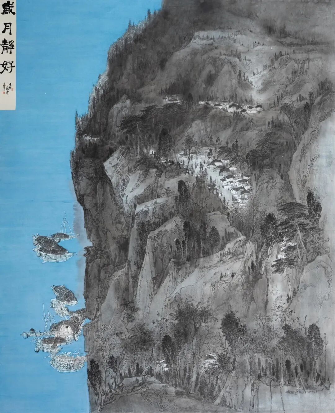 在描绘自然山水的同时,宋军认真思考人与自然和谐共生的理念,将人文生活的足迹融入画面之中,传达出对自然的热爱和敬畏以及对生活和生命的思考和情感,这种哲思情感的融入,使作品画面在视觉审美之外,增添了深刻的思想内涵。