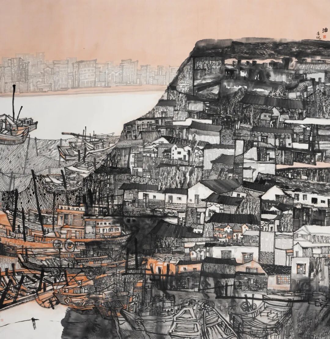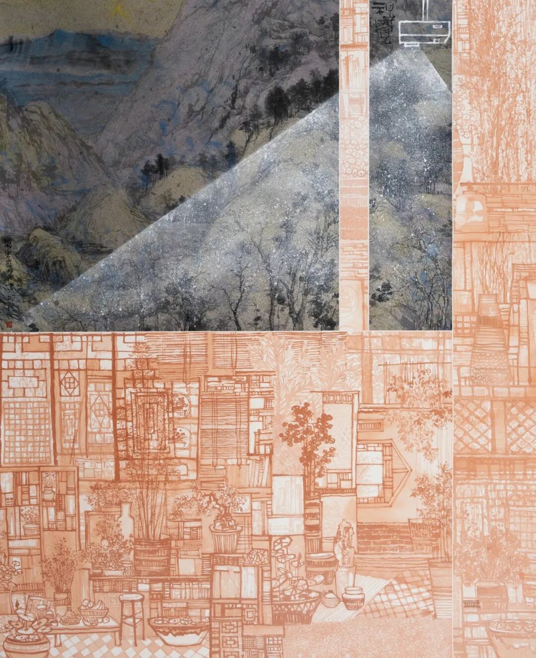 作品《富春山的回忆》则利用极富创新性的构图模式展现了李砚如何思考和探索传统与现代的结合,她通过对传统元素的重新解读和现代技术的灵活新颖的运用,创造出具有时代特征的新的艺术形式。