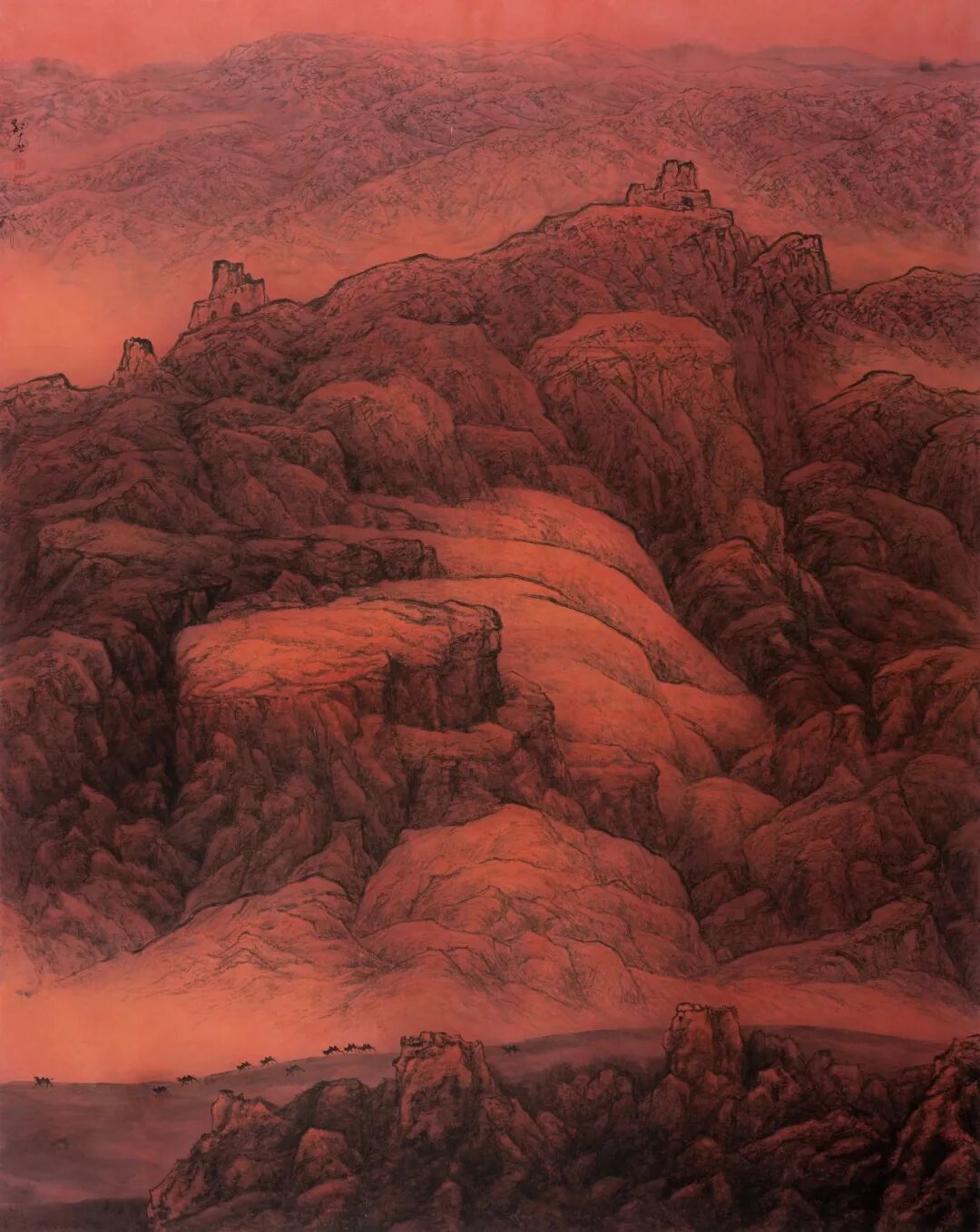 当代艺术家刘红春的山水作品,就在墨色与水的交融,创造出一种静谧而深远的意境,让人感受到自然的宁静与和谐,引领人们在这片宁静的山水中,思考人生的意义,感悟自然的智慧,体会内心的平静。