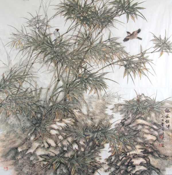 展览中的花鸟画部分,如同一曲生命的赞歌,呈现出自然界的勃勃生机与四季变幻。艺术家们以细腻的笔触与精准的色彩,将花鸟世界的灵动之美表现得淋漓尽致。作品中既有传统的工笔细描,亦有泼墨写意的大胆创新,那在画面上流动的生命节奏,流露出艺术家对大自然深深的热爱。