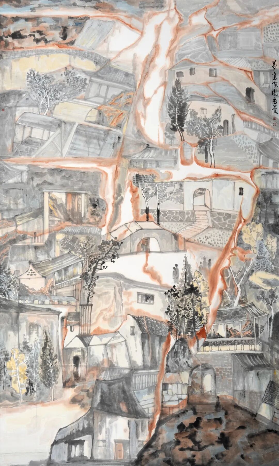 如同交织在梦幻与现实之间,王专庆在虚实相映的笔墨表现下,阐述一种理想的山水意境和自然理念,传达一种对和谐自然生活的向往。