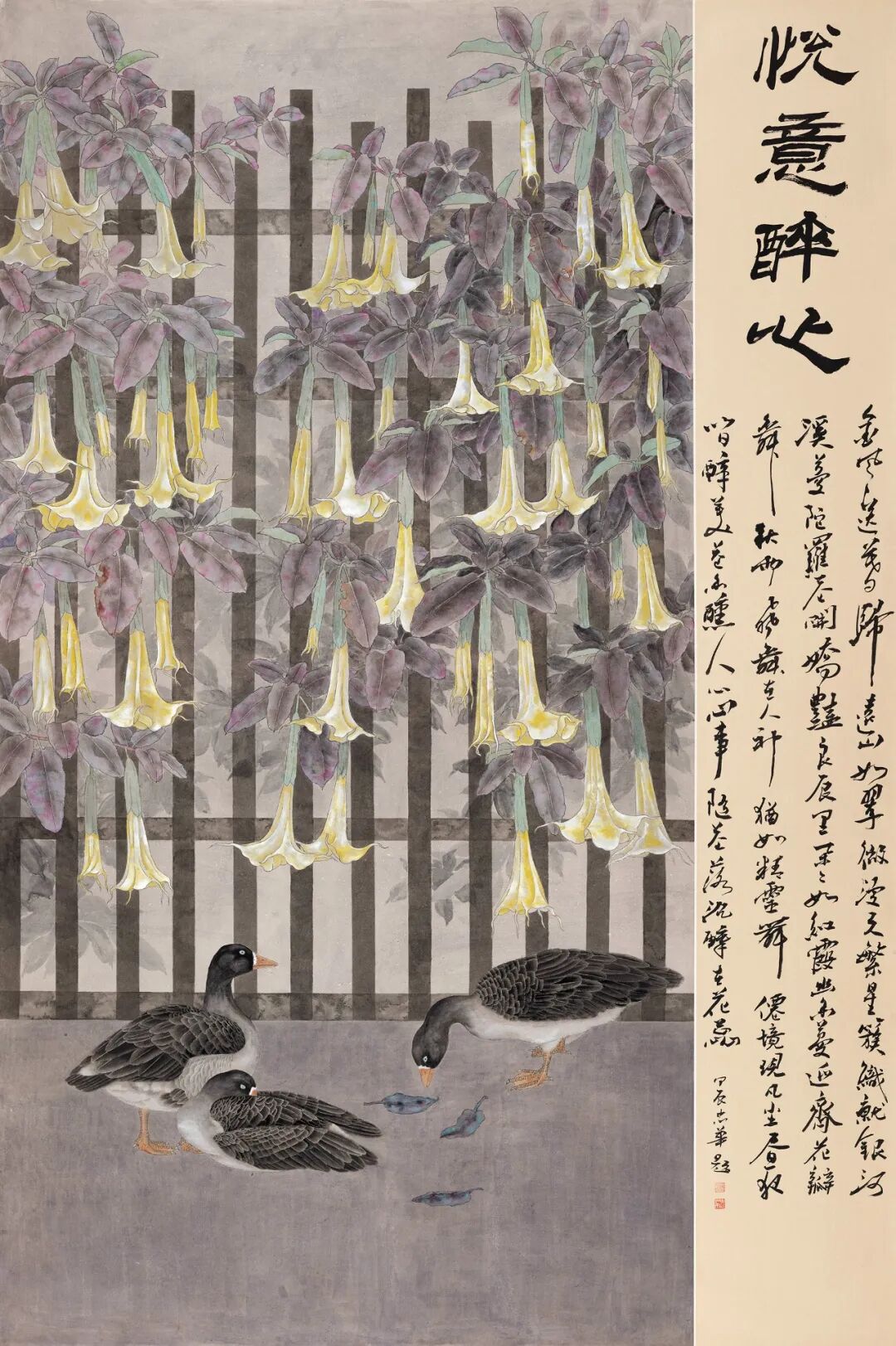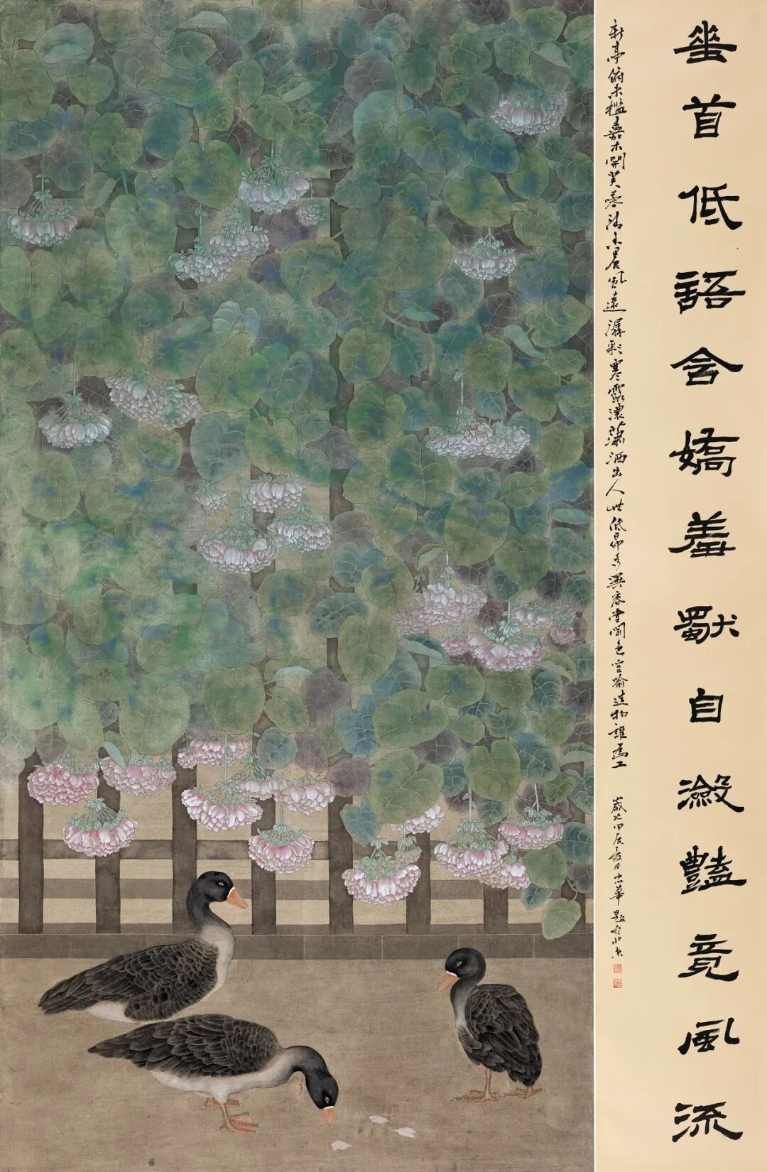 清秀而温婉,浓郁而不浓烈,杨忠华的花鸟画散发出一种寂静而平和的韵味,诗书画印的完美融合,平添古意幽深的意境。花草繁盛,安静的生长盛放,鸟禽闲适,漫步于草木之间,一静一动之间,风景愈显灵动,笔墨皆是自然。