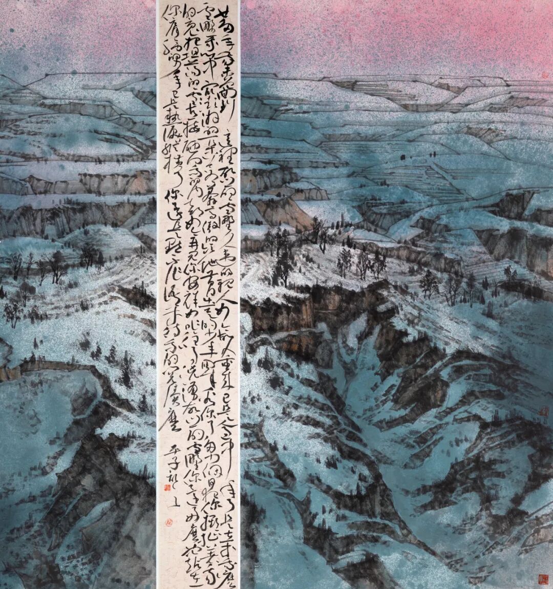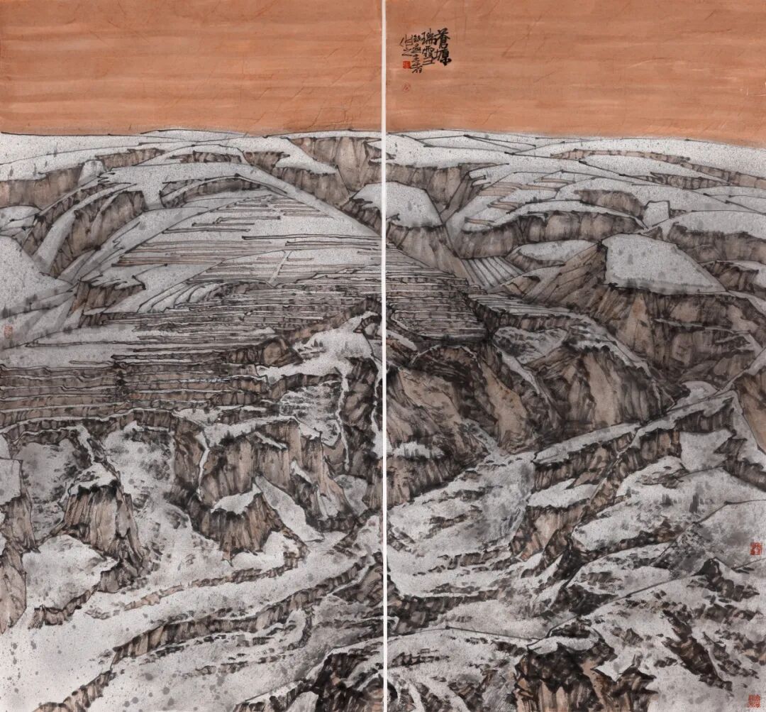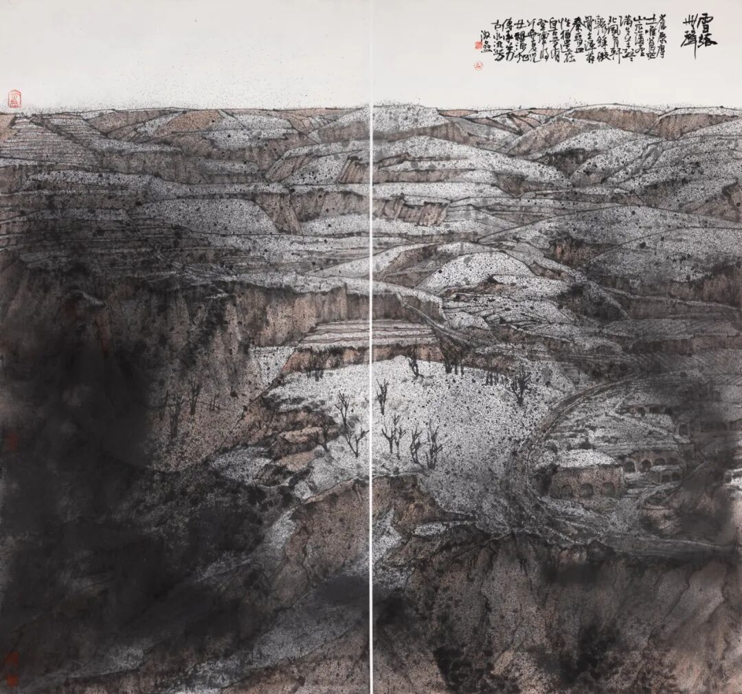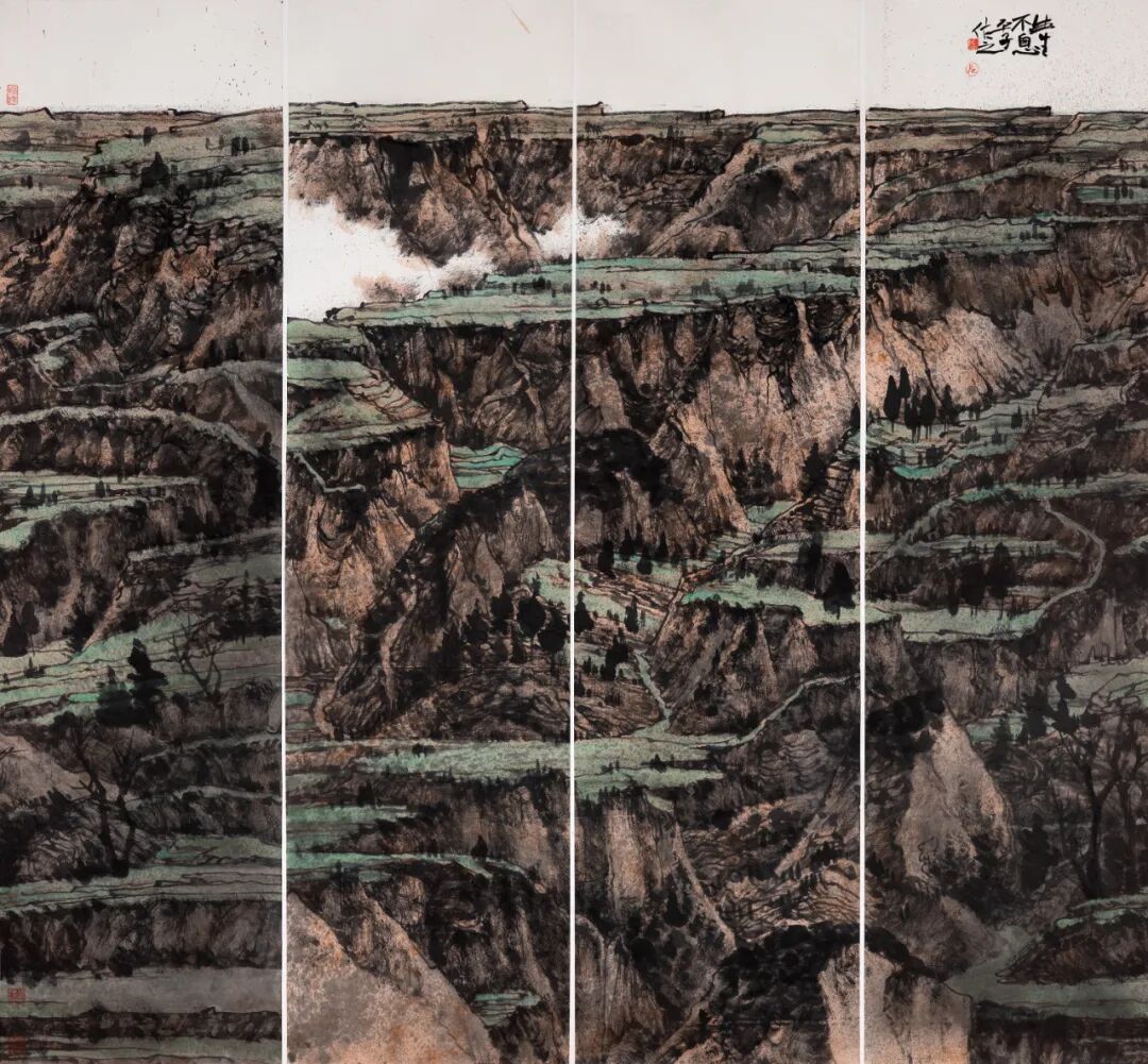 黄土高原本就有着深厚的文化内涵,张平子通过精湛的技艺和独特的审美观念,将黄土高原的自然与人文、情感与哲理完美地融合在一起,使山水画的厚重感不仅体现在画面的视觉效果上,更体现其深厚的文化底蕴上。