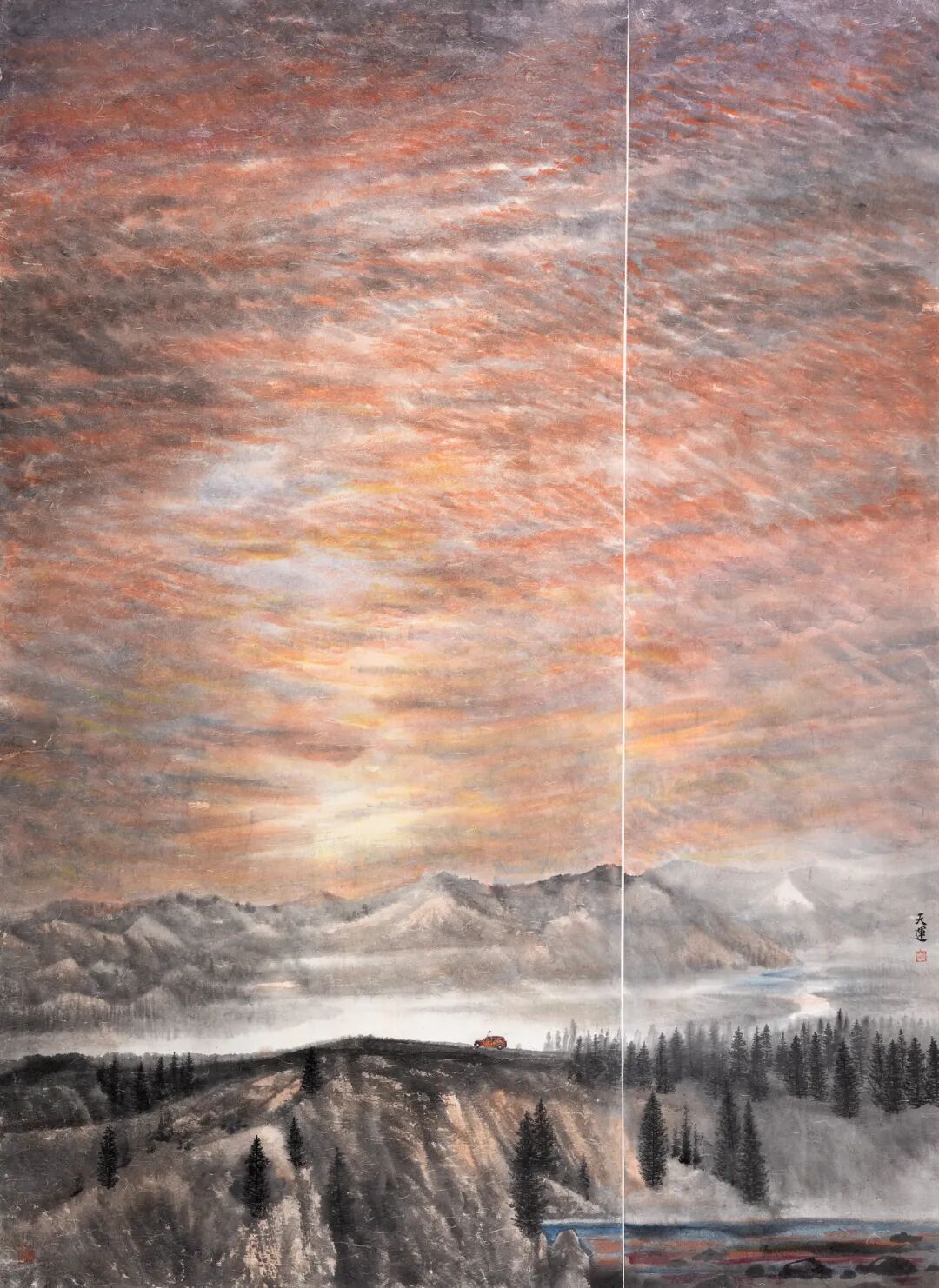 艺术家路天运的笔墨厚重大气,皴法遒劲有力,他笔下雄奇伟岸的山川尽显北方山水的浑厚自然,展现了一种雄浑、壮阔、质朴的美。