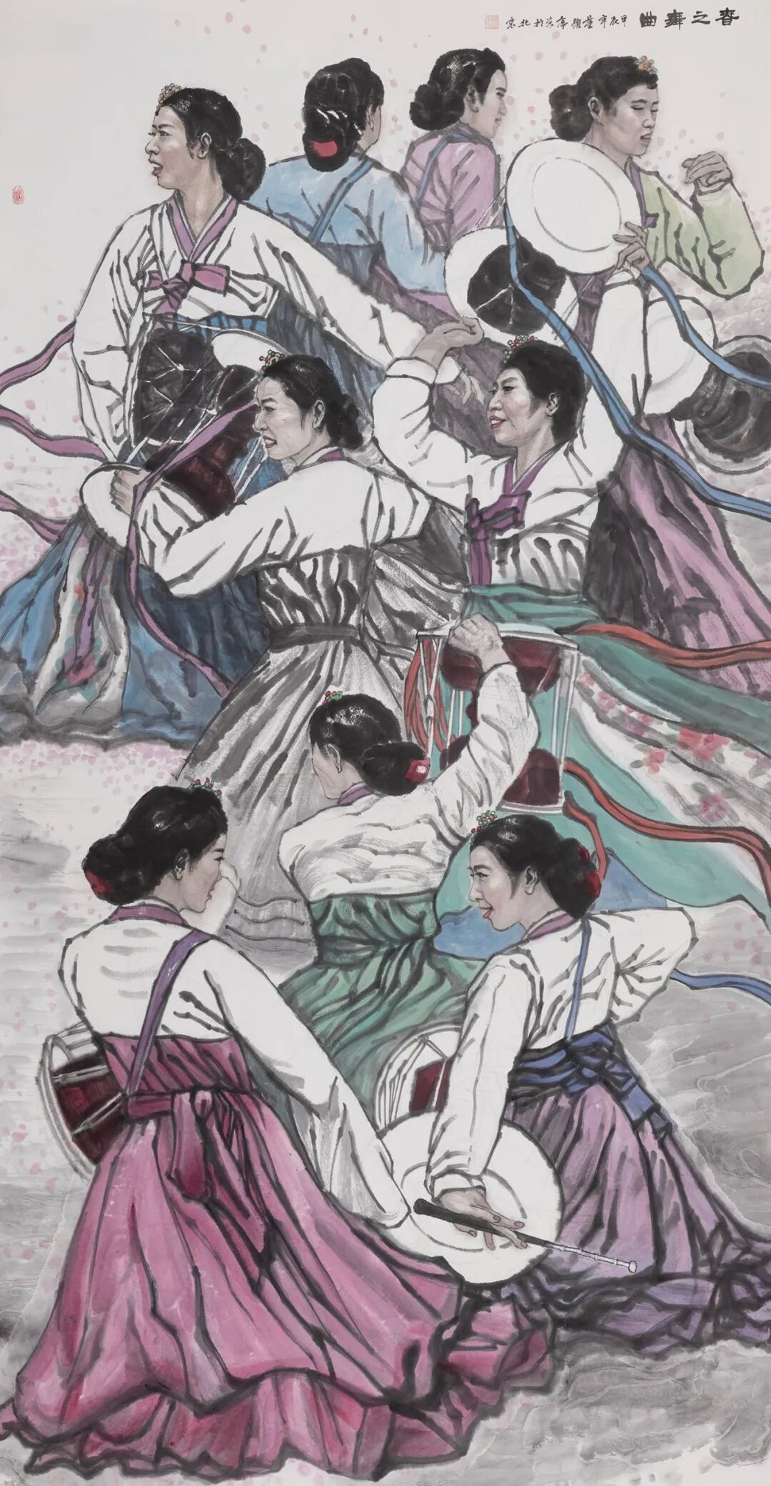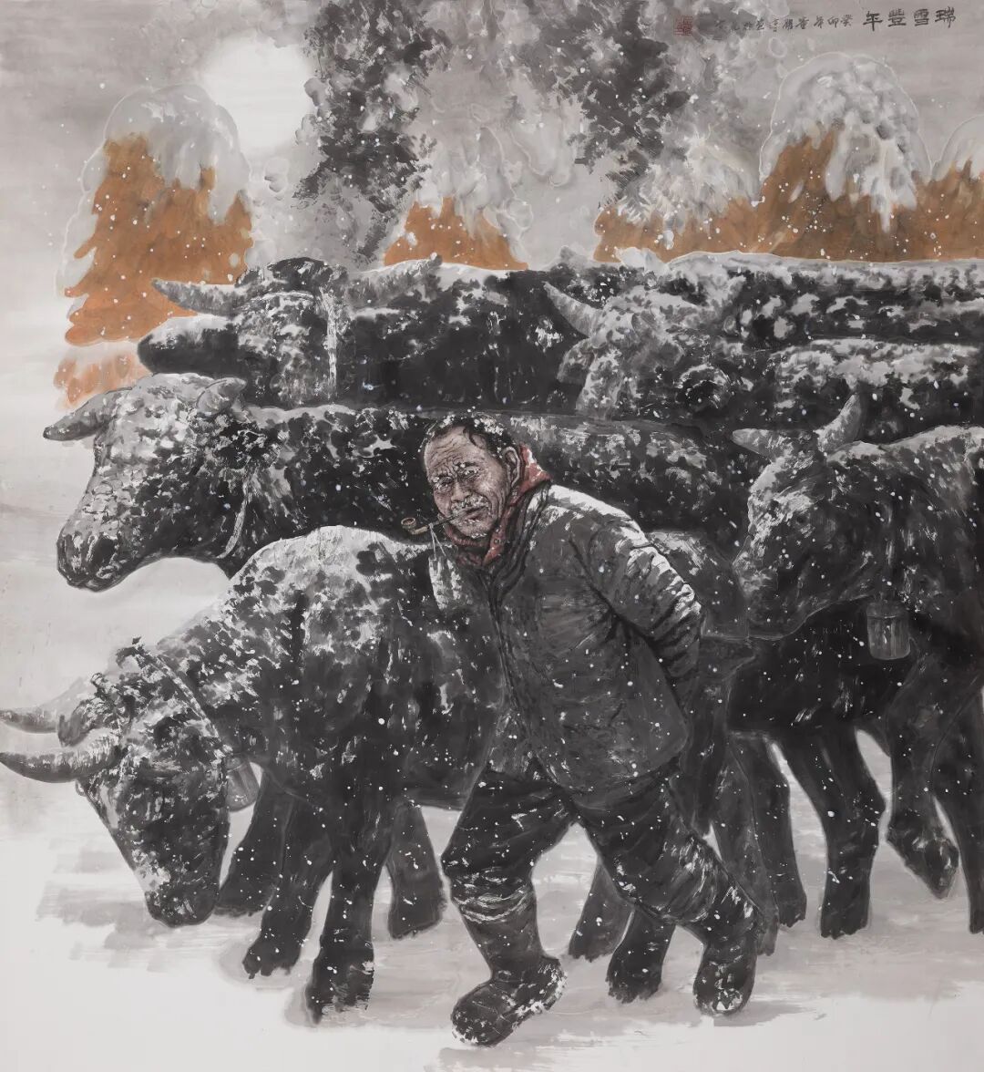 画家董跃亭的笔墨,是扎根泥土的叙事诗。他擅写意人物,笔下并非符号化的群像,而是眉眼含情、筋骨铮然的个体。农人、牧人、舞者——皆以枯润相济的线条勾勒,墨色淋漓间涌动着生活的蓬勃热气。