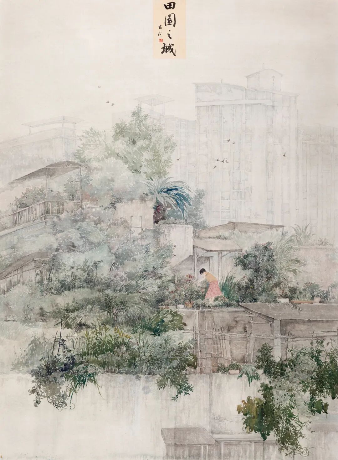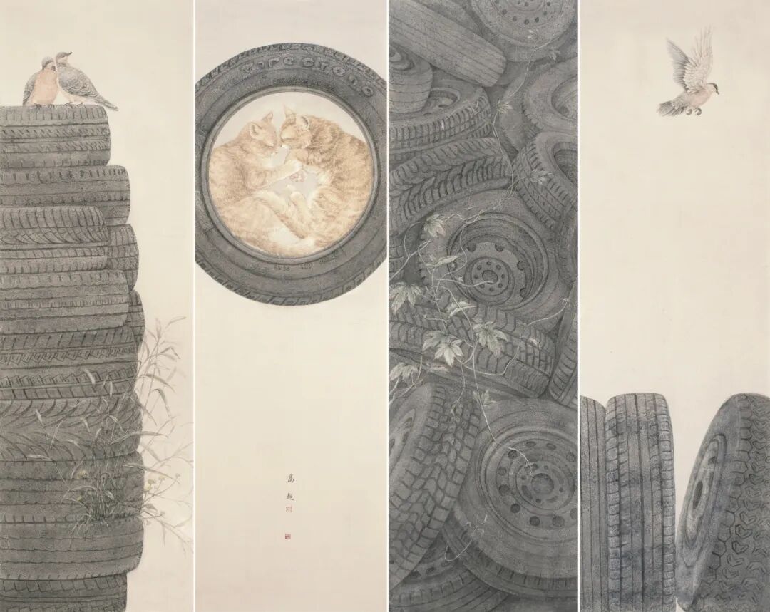 枝头攒动的鸟儿带着风的气息,带动一串串花香弥漫,恣意蔓延的绿意在城市的轮廓里彰显生机,王高超在花鸟的世界里写意生活的美好,勾勒出田园的脉络,带着观者走进这水墨画卷的深处。