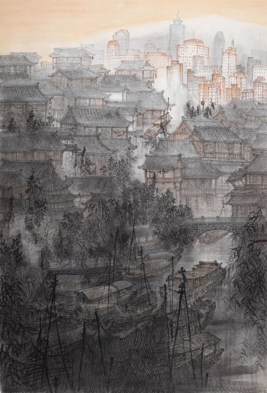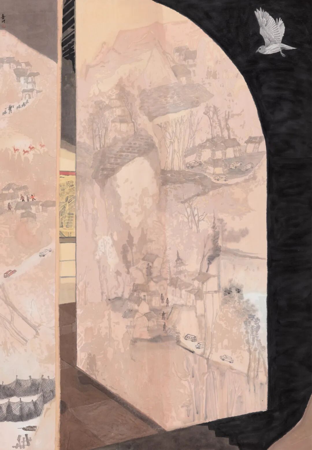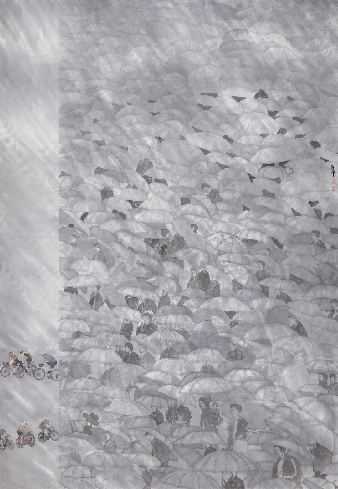 徐喜中注重笔墨韵味,着力构造充满东方水墨风情的画面意境,他将当代社会和文化元素融入作品中,关注当下的社会问题和个体经验,作品内容从对日常生活场景的描绘,到对故土、城市、家园乃至人类命运的关切与思考,展现了自身对社会和环境议题的深切关注。