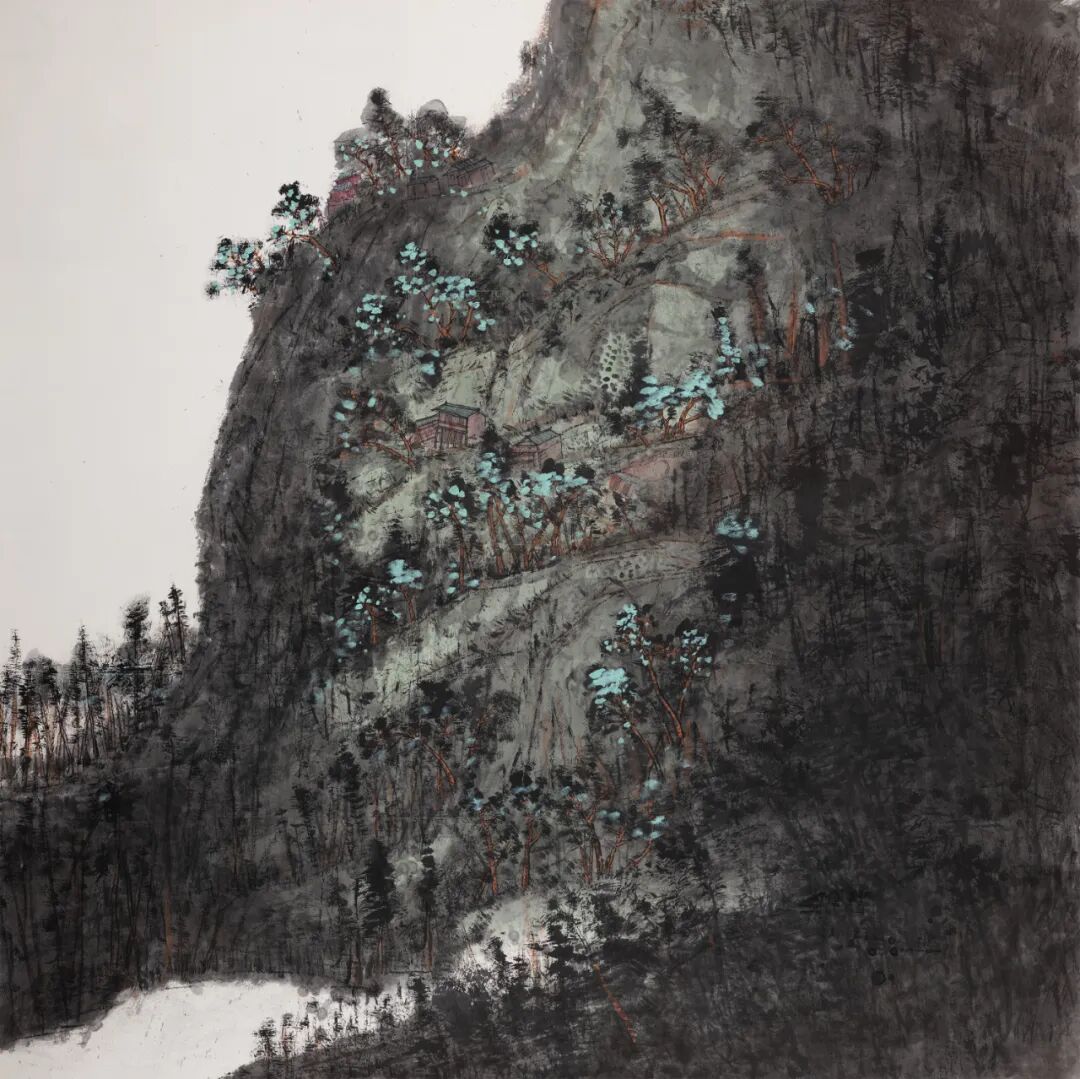 徐喜中在笔墨运用上进行了大胆的创新,将传统水墨与其他艺术形式相结合,将色彩与墨色进行糅合,不仅凸显了画面的机理效果和视觉冲击力,还增添了画面的厚重感和细腻层次感。