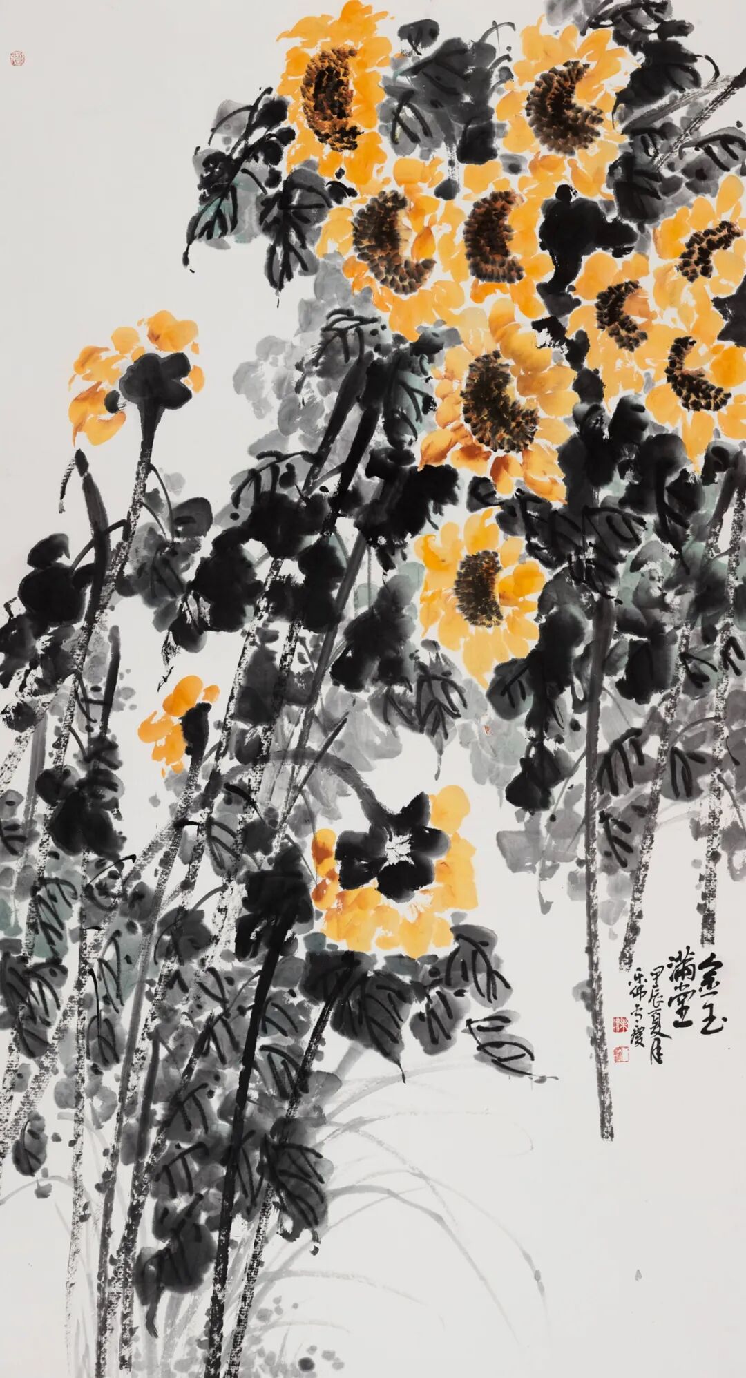 人物画则展露“以形写神”的千年哲思——以简净笔线承载丰沛情思,令观者在形神之间体悟人生百味。花鸟作品更见写意精神的嬗变,疏朗的枝叶以篆籀笔法入画,饱满的果实似将坠未坠,在“似与不似”间迸发生命张力。