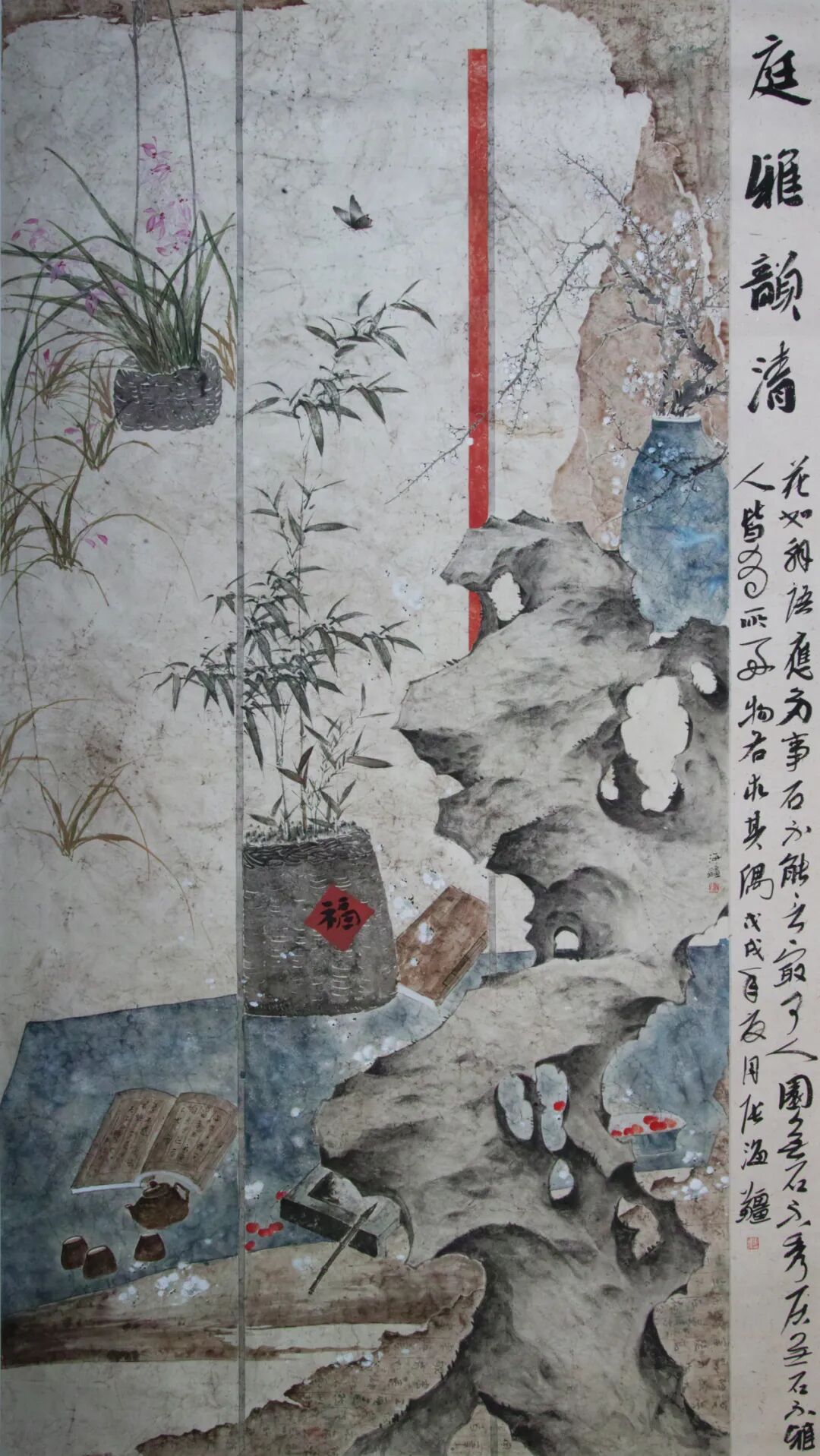 山水不再是远方的风景,而是胸中丘壑的映射,层峦叠嶂间流淌着亘古的幽寂与生命的律动;花鸟亦非闲庭点缀,翎羽花瓣的勾勒中,蕴藏着对生之绚烂与瞬息永恒的细腻体察;人物则如时光长河中的剪影,一颦一笑、衣袂飘举间,凝固了人世的温情与哲思。