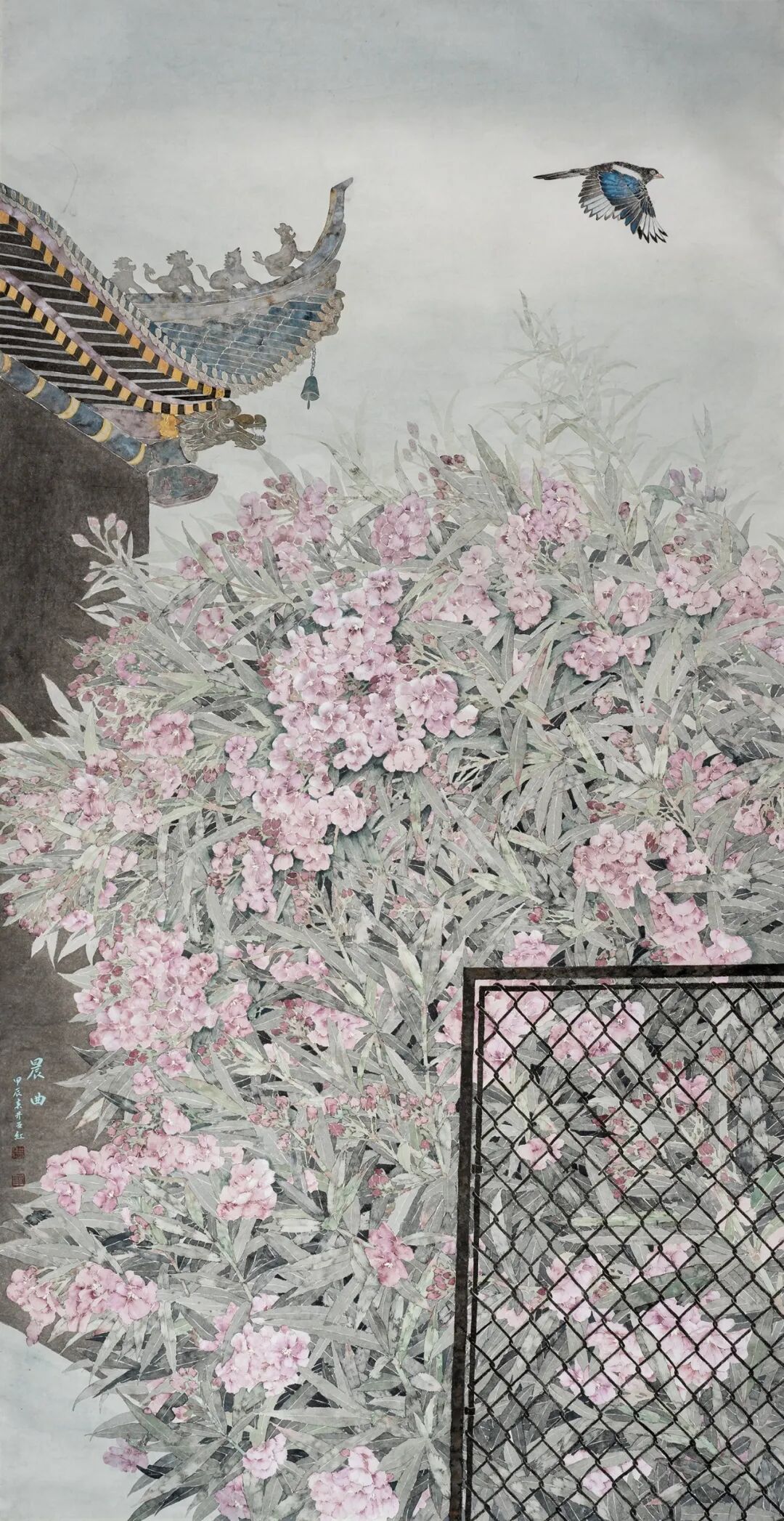 大景水墨花鸟画以其开阔的视野与生命的张力独树一帜,井亚红以写生为基础,捕捉花鸟草木在风晴雨露中的瞬息姿态,赋予花鸟作品以鲜活的动态质感,让大自然灵动的画面在笔墨中留下生动印记。