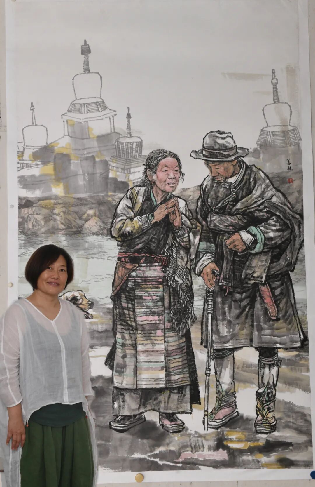 在笔墨技法上,姜艳根据不同民族文化特质重构语言体系,将写实与写意结合,把极具文化标识性的色彩纳入水墨体系,通过“以墨醒色、以色融墨”的技法,使画面既保持水墨本体性又绽放鲜活的地域文化色彩。