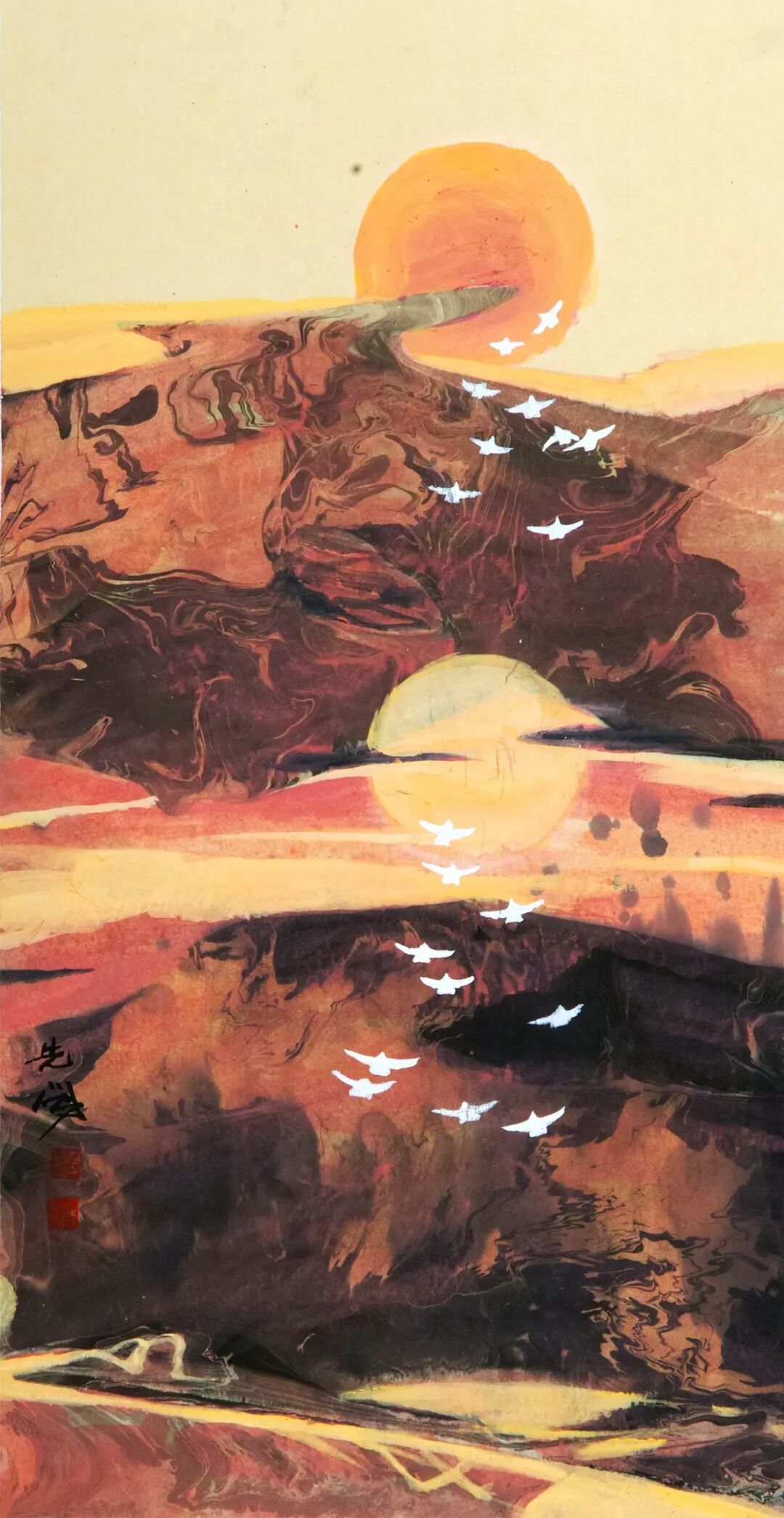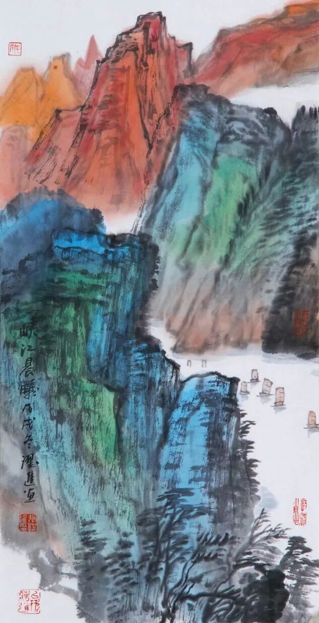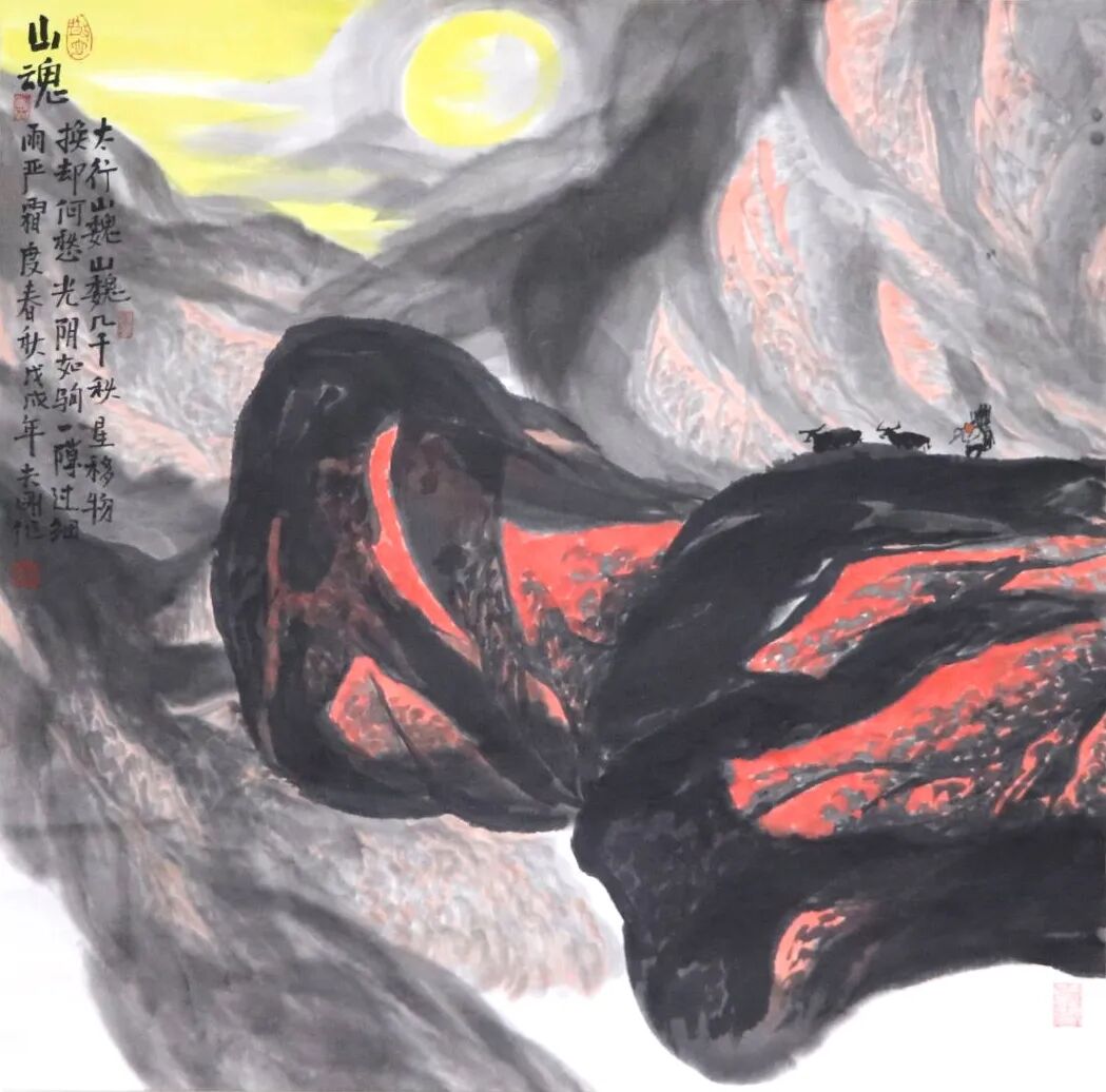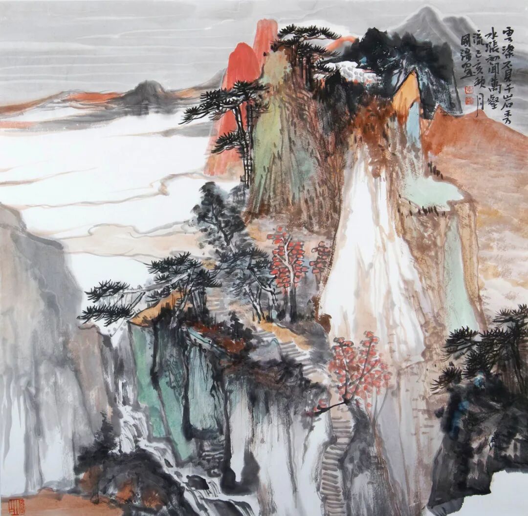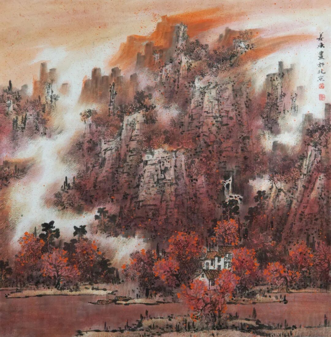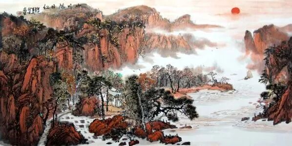 在国画山水中的红色以“朱”和“绛”两色为主,承载着画家的情思与情感的寄托,将中国特有的“红”文化传承和宣扬。