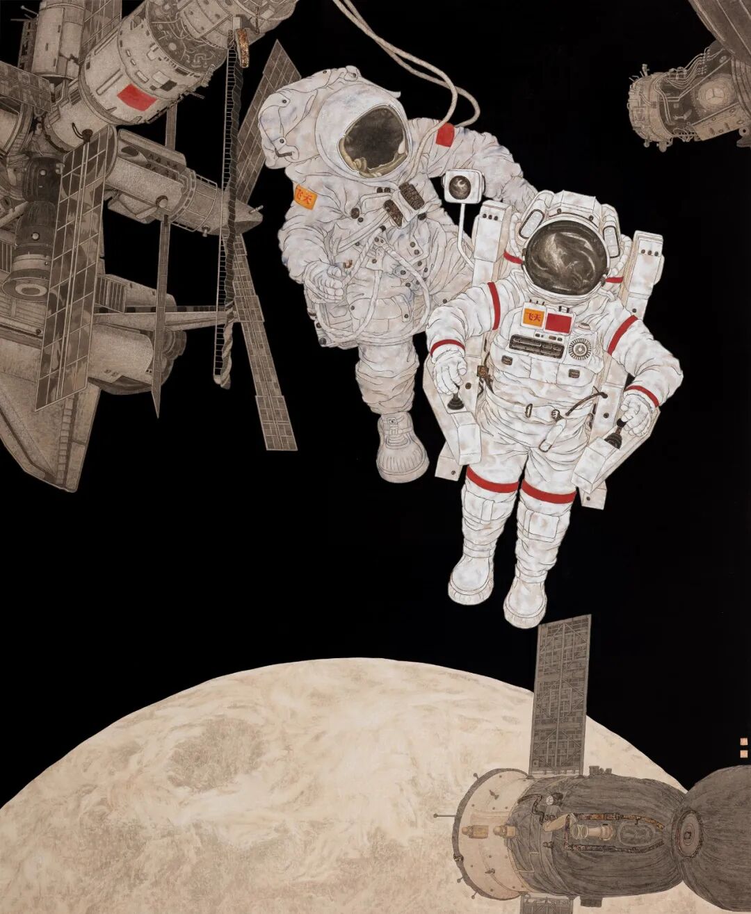 在画面内容上,李长平更注重时代主题,以笔墨书写现代发展的篇章。他描写民族人物,展现时代发展下少数民族地区的发展风貌,描写航天太空,彰显强大祖国在航空航天事业发展中的巨大飞跃,描写阳台一角景致,展现高楼林立的现代化都市发展进程。