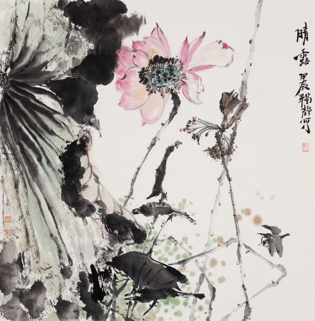 在技法层面,画家们展现了高超的的平衡能力。一方面,对笔墨有着极强的控制力,线条精准而富有弹性,设色雅致而层次丰富;另一方面,利用水墨在宣纸上的自然渗化,偶得天趣,创造出意料之外、情理之中的肌理效果。
