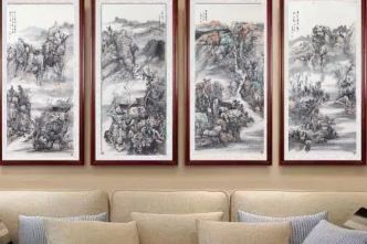 品画 丨 让你忙碌的心灵静下来隽永之美在繁忙都市生活中,我们总是匆匆忙忙,快节奏的生活让我们不自禁地忽略了身边的美景和内心最真实的自己。你可曾记得有多久没有与心灵读白、与思绪交流了,可曾让自己静下来,去体会和感知那些属于自己的风景?去欣赏优秀的国画吧,它们像蓝天上的阳光、春季里的清风一样,能够启迪思想、温润心灵、陶冶人生,能够扫除颓废萎靡之风,让那颗烦杂不定的心慢慢静下来。中国美协画家苏鼎作品家装效果传统韵味的国画山水,不仅有